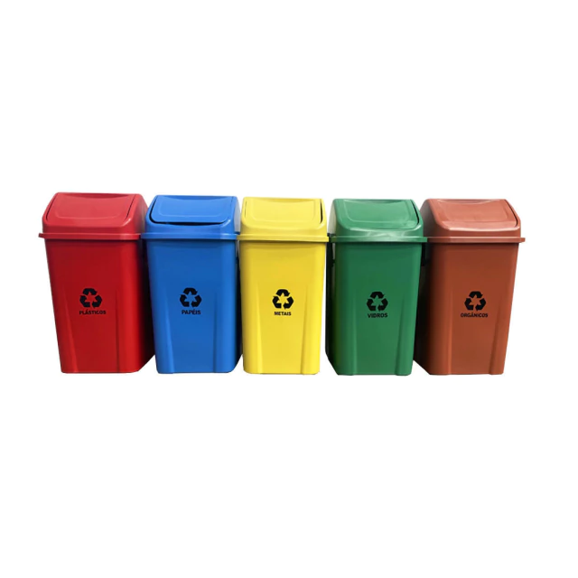 O Conjunto Coleta Seletiva Basculantes 100L com 5 Lixeiras da tna plast é fabricado em Polipropileno (PP), são produzidas com alto padrão de tecnologia e qualidade de acordo com as principais normas vigentes da (ANVISA).