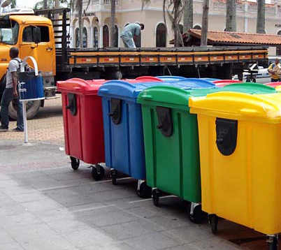 As opções de cores são associadas à coleta de resíduos conforme padrão Conama, sendo assim, vermelho para plástico, azul para papel, verde para vidro, amarelo para metal, marrom para orgânico, cinza para não recicláveis, branco para infectante, laranja para perigosos ou contaminados e preto para madeira.
